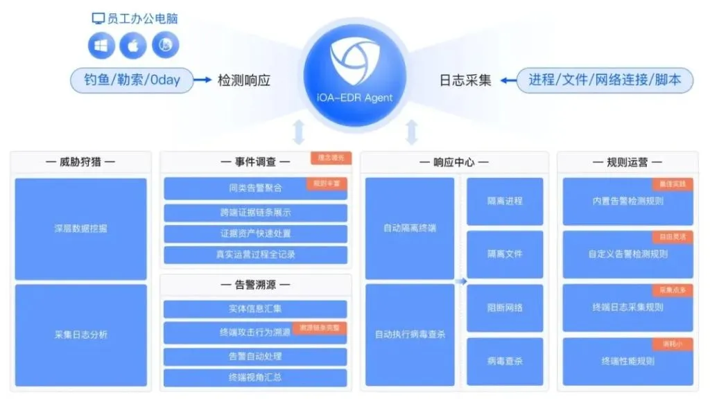 在实战攻防中,腾讯iOA-EDR围绕安全效果、轻量化构建了三大核心能力:
